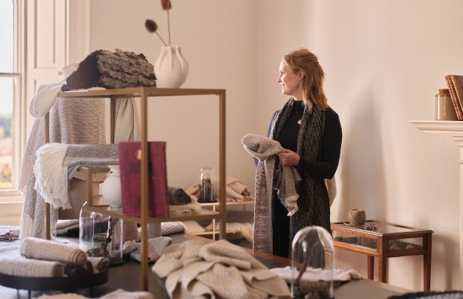 Araminta Campbell was founded with a deep commitment to authentic storytelling through responsible, traceable traditional textile techniques. Their woven designs speak of the Scottish landscape they are created within, reflecting an inherent love and care for the natural world.