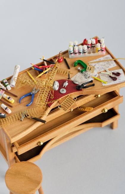 The world of miniatures is unique, where crafts of all disciplines are used on a tiny scale. Everything from metalwork, ceramics, needlepoint, furniture making, glassware & wickerwork. Also, skills in creating replica food from Fimo clay, tiny designer handbags & shoes, plants made from paper or clay: alongside the dolls and animals that inhabit this micro world.