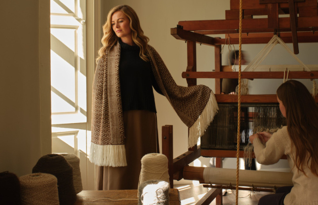 With a mission to preserve Scottish weaving practices, Araminta Campbell is today the UK’s largest employer of handweavers. This small team create luxury heirloom-quality pieces in British Alpaca with full field traceability.