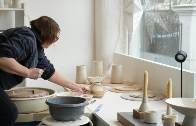 Beverley Sommerville is a studio potter and ceramic artist based in Cheshire. Her practice explores the relationship between material and place, incorporating elements gathered from locations or events of personal and historical significance. By blending these materials into clay, she creates ceramic art that captures the essence of time and place.