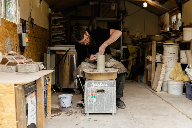 Robert Hunter is a Scottish ceramicist based in Glasgow, known for creating pieces that embody the landscapes and environments he encounters. After graduating from Gray’s School of Art in 2017, Robert’s journey took him across the UK and to Spain, where he worked under the guidance of artist Maria De Haan. During the Covid pandemic, he established his own studio in Ayr and has since relocated to Glasgow. Robert’s work reflects his connection to the natural world, infusing his ceramics with materials and textures from his travels.